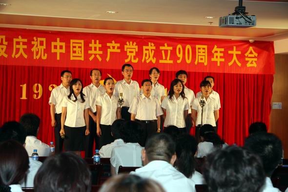 7月1日上午,中國共產黨90歲誕辰,在莊嚴的國歌聲中,公司慶祝中國共產黨成立90周年大會隆重召開。會議回顧了黨的光輝歷程,總結了公司發展成就和黨建工作的寶貴經驗,表彰了先進基層黨組織和優秀共產黨員,舉辦了精彩的歌頌共產黨演唱活動,動員廣大黨員深入推進全面創先爭優,為加快公司穩步快速發展而而努力奮斗。