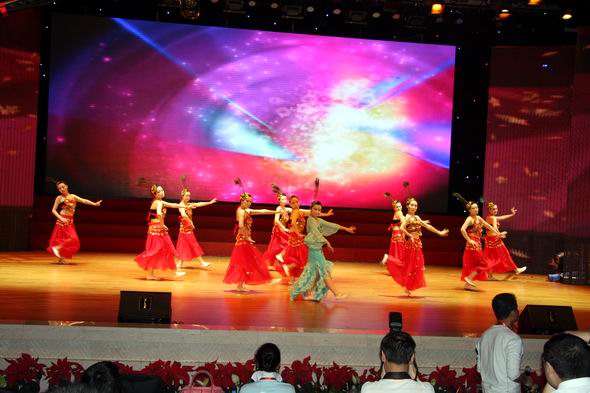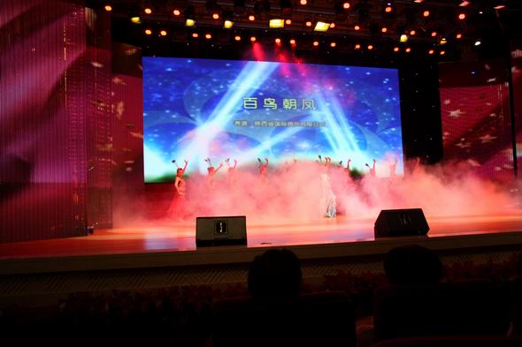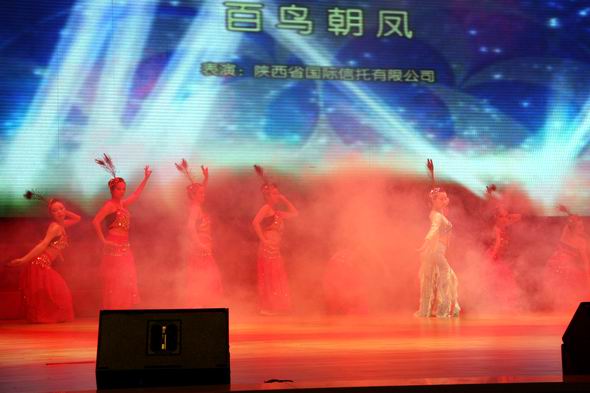 陜西銀行業慶祝建黨90周年文藝晚會于6月30日在西安市高新區管委會千人會堂隆重舉行。我公司員工演出的舞蹈節目《百鳥朝鳳》參加了演出。《百鳥朝鳳》寓意全國各族兒女心向共產黨,用藝術的手法表達華夏兒女對黨的熱愛,也充分展現陜國投的公司風采和員工的精神風貌。