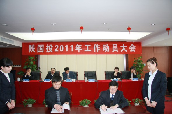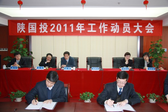 2011年2月10日,公司召開了陜國投2011年工作動(dòng)員大會(huì)。公司領(lǐng)導(dǎo)、公司全體員工參加了會(huì)議。會(huì)議由公司常務(wù)副總裁杜磊主持,黨委書記、董事長薛季民作了動(dòng)員講話,并對(duì)當(dāng)前的要著重抓好的重點(diǎn)工作進(jìn)行了部署。