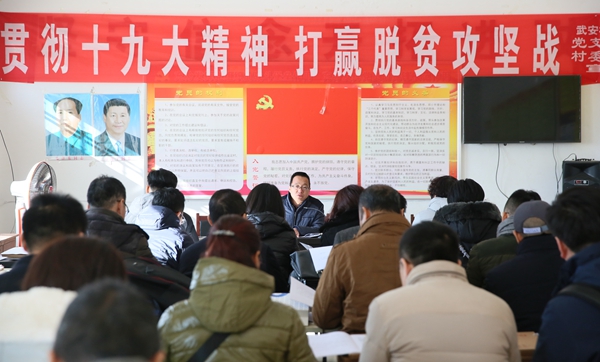 完成準(zhǔn)備工作后,以支部為單位形成工作組迅速組織開展入戶調(diào)查及政策宣傳工作。武安村村組分布較為分散,幫扶人員在村民的帶領(lǐng)下走村串巷、深入調(diào)查走訪。一戶挨著一戶走、一家挨著一家談,詳細了解貧困戶家庭收入情況,認(rèn)真調(diào)查產(chǎn)業(yè)幫扶項目、教育扶貧、異地搬遷、危房改造、醫(yī)療補助等各項措施是否落實到位,詢問“兩不愁”“三保障”的脫貧目標(biāo)是否實現(xiàn),吸納貧困戶對幫扶工作的意見和建議,真正把精準(zhǔn)扶貧做細做實。