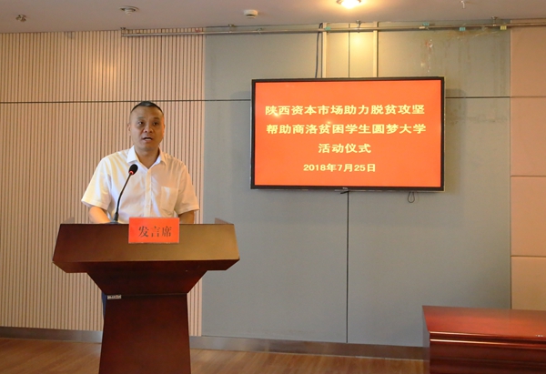 7月25日,陜西資本市場愛心助學活動在陜西省商洛市市政府順利舉辦。公司積極響應,發揮信托優勢,公司副總裁、總會計師李永周在活動中介紹了“陜國投·上市公司助力脫貧攻堅慈善信托”的相關情況。陜西證監局副局長郭世明、陜西上市公司協會副會長徐子睿、商洛市人民政府副市長柳憲軍等領導出席,省內11家上市公司參加活動。