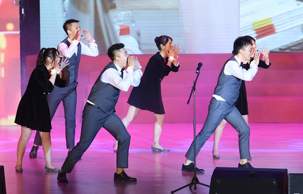 伴隨原創歌曲“國投之光”的奏響,晚會正式拉開序幕。整場晚會分為“不忘初心”、“砥礪前行”、“再啟征程”三個篇章。各部門踴躍參與,精心準備了25個節目,涵蓋了歌曲、舞蹈、朗誦、舞臺劇、小品、相聲等多種形式,精彩紛呈,高潮迭起,現場氣氛十分熱烈。