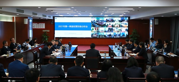 4月13日,公司召開2021年第一季度經營形勢分析會,分析總結一季度經營形勢,安排部署下一階段重點工作。公司黨委書記、董事長薛季民主持會議并講話,總裁姚衛東、公司高管及資深經理、各部門負責人等參加了會議,省外部門相關人員視頻參會。