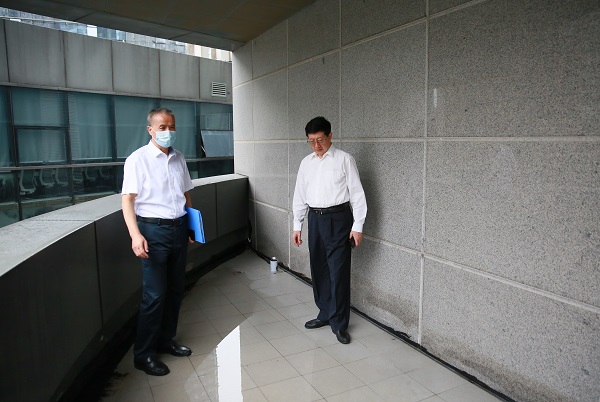 7月26日,黨委書記、董事長薛季民帶隊(duì)對公司防汛安全及疫情防控工作進(jìn)行了檢查,組織辦公室、后勤服務(wù)中心相關(guān)人員前往公司總部檔案室、職工餐廳、地下車庫及裙樓露臺等重要設(shè)施及低洼易澇點(diǎn)進(jìn)行實(shí)地查看,逐一詢問了相關(guān)排水管道、排污管網(wǎng)、水電設(shè)施等情況,要求后勤服務(wù)中心及時對存在隱患的部位進(jìn)行檢修,保證人防、物防、消防等設(shè)備正常運(yùn)轉(zhuǎn),確保防汛不留死角,安全不留隱患。接著,薛季民一行對公司辦公場所疫情防控工作進(jìn)行了檢查,要求相關(guān)人員嚴(yán)格落實(shí)常態(tài)化疫情防控要求,繼續(xù)做好體溫檢測、健康碼查驗(yàn)登記等疫情防控措施,最大限度消除疫情傳播風(fēng)險,堅(jiān)決維護(hù)好來之不易的防控成果。