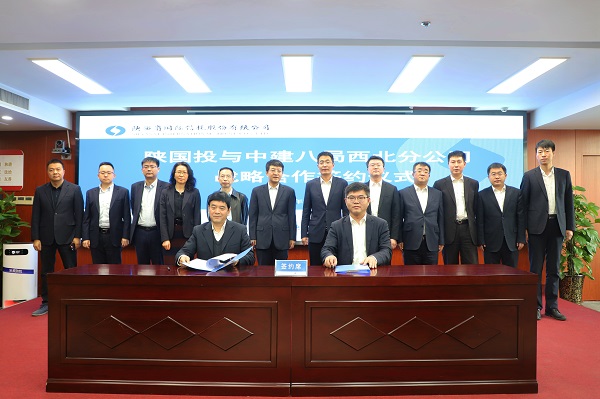 王曉雁、杜善啟分別代表陜國投與中建八局西北公司簽署協議,雙方將攜手共進,不斷提高服務實體經濟、重點項目的水平和能力,提升雙方在金融體系和社會發展中的作用和影響力。