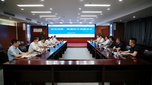 6月10日下午,西投控股董事長杜巖岫、副總經理王一梅一行來我公司交流座談。公司黨委書記姚衛東,黨委委員、總會計師賈少龍,董事會秘書王維華等參加會談。