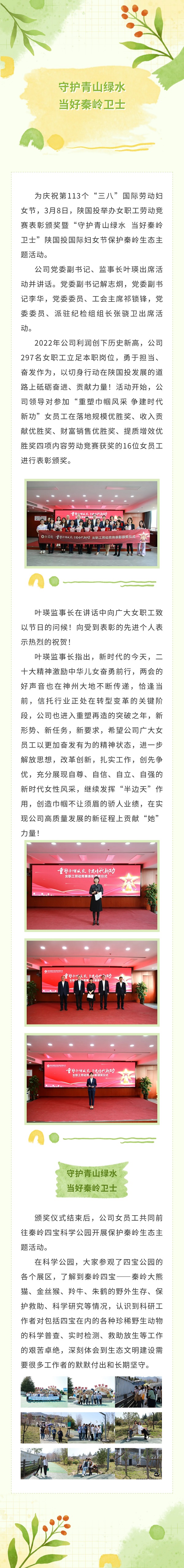 公司舉行女職工勞動競賽表彰頒獎暨國際婦女節保護秦嶺生態主題活動