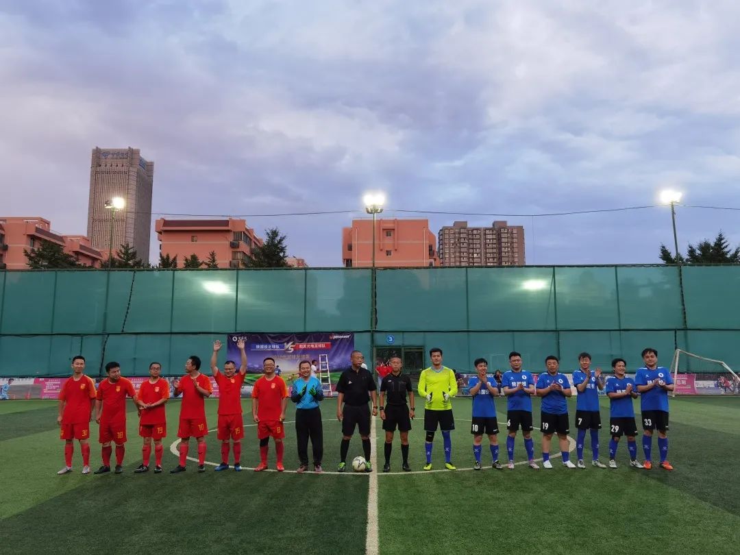 賽前高新地區突降暴雨,未能影響雙方球員比賽的熱情。公司黨委委員、工會主席祁鎖鋒,西安和其光電公司董事長張文松、常務副總裁樊維濤蒞臨比賽現場給隊員加油鼓勁。張文松親自上陣擔任中鋒,樊維濤堅守大門。雙方場上隊員個個精神飽滿、斗志昂揚。