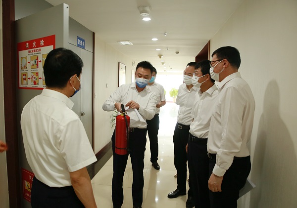 姚衛東一行逐個檢查了公司辦公場所、員工餐廳、公共區域的消防設施、安全保衛、防恐防暴、地下車庫消防和防汛設施,以及公司電氣管理、機房和網絡安全管理、疫情防控等情況,全面了解公司安保配備、值班備勤、應急處突等工作開展情況,詳細排查風險隱患。