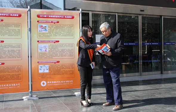 活動現場,公司設置了“金融消費咨詢臺”,向群眾發放《新〈消費者權益保護法〉亮點解讀》、《金融消費者權益保護宣傳資料》等,工作人員耐心解答消費者咨詢,結合信托特點,以易懂易記、生動活潑的形式向公眾普及金融知識,引導消費者科學選擇符合自身風險承受能力的信托產品,幫助消費者提升保障財產安全的意識和能力。與此同時,公司通過門楣滾動屏、電視顯示屏、設置立體展板等多種渠道,向廣大群眾宣傳金融消費知識,幫助樹立正確的信托投資理念,強化自我權益保護意識,掌握自我權益保護方法,現場反響熱烈。